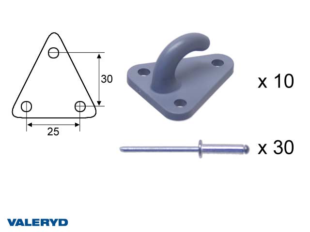 Fästkrok till lastnät med popnit (10-pack)